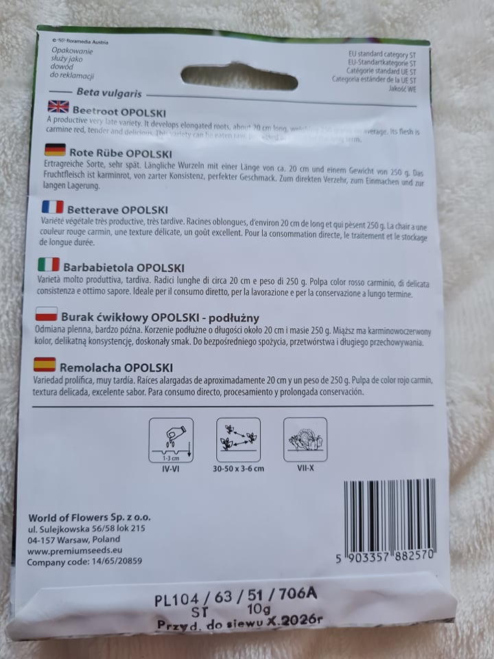 Opis rośliny: Burak Opolski to pierwsza w Polsce odmiana buraków o cylindrycznym kształcie korzeni. Jest to odmiana z kilkuletnią tradycją, ale ciągle prześciga swoją popularnością najnowsze twory. Jego korzenie są bardzo smaczne i zdrowe, zasobne w składniki mineralne, nadają się do długotrwałego przechowywania i mogą być przeznaczone na wartościowy sok.