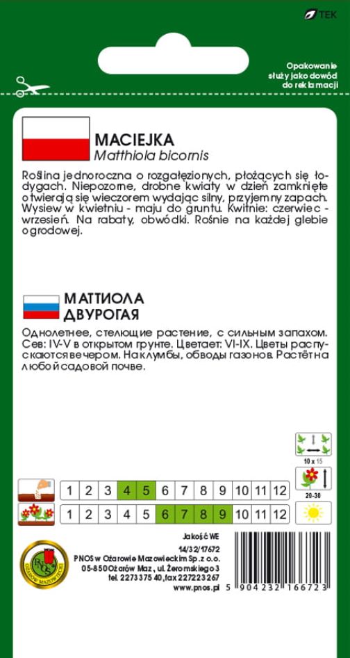 Wysiew: IV-V wprost do gruntu Rozstawa: 10-15cm Wysokość: 30-50cm Kwitnienie: VI-VIII Stanowisko: słoneczne i półcień Liczba nasion: 1200 szt. w gramie
