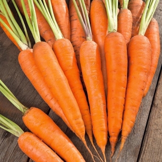 Właściwości i zastosowanie: Marchew jest warzywem lubianym i cenionym. Korzenie marchwi Karotina, ze względu na słodki smak doskonale nadają się do bezpośredniego spożycia w surówkach lub jako zdrowa przekąska oraz do produkcji soków i przecierów.