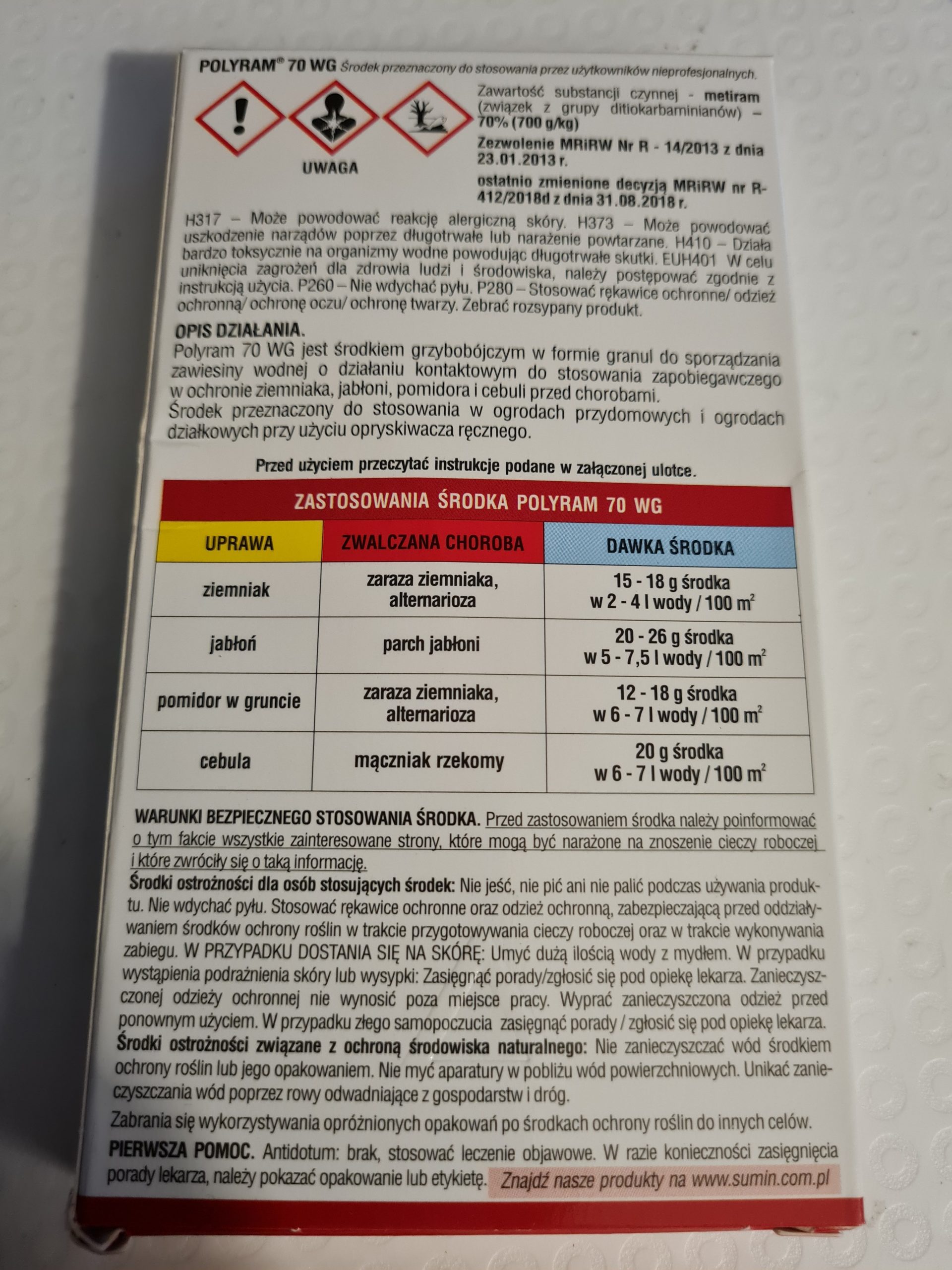 Ze środków ochrony roślin należy korzystać z zachowaniem bezpieczeństwa. Nie jesc, nie pic, nie palic podczas uzywania produktu. Nie wdychac pylu. Stosowac rekawice ochronne oraz odziez ochronna.Przed każdym użyciem przeczytaj informacje zamieszczone w etykiecie i informacje dotyczące produktu.
