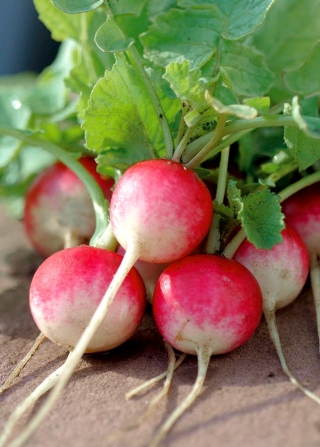 Rzodkiewka Krakowianka to wcześnie plonująca odmiana o uniwersalnym zastosowaniu, przeznaczona do uprawy zarówno gruntowej jak i pod osłonami. Jej zgrubienia korzeniowe są dwukolorowe i wypełnione pysznym, jędrnym miąższem. Jest odporna na parcenie i nie wypuszcza przedwcześnie pędów kwiatostanowych. Nasiona prezentowanej odmiany dostępne są teraz w nowej, ulepszonej postaci otoczkowanej. Specjalna otoczka chroni kiełki przed negatywnym wpływem środowiska, zapewniając im dobre warunki do rozwoju i plonowania. Nazwa: Rzodkiewka Krakowianka – nasiona otoczkowane Nazwa łacińska: Raphanus sativus Forma życiowa: Odmiana jednoroczna. Termin siewu: Krakowiankę można uprawiać z przeznaczeniem na zbiór wiosenny oraz jesienny. Na zbiór wcześniejszy nasiona wysiewamy wczesną wiosną, zaraz po obeschnięciu ziemi. Na zbiór późniejszy wysiew przeprowadzamy w sierpniu. Okres zbioru: Przy wcześniejszym terminie siewu korzenie odmiany są gotowe do zebrania od kwietnia do czerwca, przy późniejszym od września do listopada. Ulistnienie: Wyrastająca ponad powierzchnię gruntu rozeta liściowa składa się z niewielkich, skrętolegle ułożonych, lirowatych liści pokrytych owłosieniem. Osiągają długość do 13 centymetrów. Korzenie: Zgrubienia rzodkiewki Krakowianka mają kuliste kształty i niewielkie rozmiary. Ich cechą charakterystyczną jest dwukolorowość. Większa, górna część korzenia wybarwiona jest na czerwony kolor, a dolna jest biała. Miąższ u tej odmiany jest biały, jędrny o łagodnym smaku. Zastosowanie: Odmiana Krakowianka najlepiej nadaje się do uprawy gruntowej, ale sprawdzi się również pod osłonami. Korzenie o łagodnym, mało ostrym smaku najlepsze są spożywane na surowo, w sałatkach czy surówkach. Można chrupać je bez obaw bo są niskokaloryczne i zdrowe. Dobrze smakują jako dodatek na pysznych, wiosennych kanapkach. Odmianę można uprawiać jako przed-, śród- i poplon. Właściwości: Korzenie rzodkiewki, choć niewielkie, mają w sobie duże pokłady cennej witaminy C oraz witamin z grupy B. W ich składzie odnajdziemy również fosfor, żelazo, wapń. Stanowisko: Odmianę Krakowianka polecamy uprawiać na glebie średnio zwięzłej, próchnicznej, przewiewnej i wilgotnej, najlepiej o pH 6-7,5. Należy unikać świeżego obornika i ciężkiego, podmokłego podłoża. Stanowisko powinno być słoneczne. Mrozoodporność: Krótko trwające spadki temperatur nie wpłyną negatywnie na rozwój zgrubień. Rozstawa: Nasiona tej odmiany należy wysiewać rzędami, w odstępach 10-20 centymetrów. Opakowanie zawiera aż 300 sztuk nasion otoczkowanych rzodkiewki Krakowianka, informacje objaśniające prawidłową uprawę, a także termin przydatności do wysiewu.
