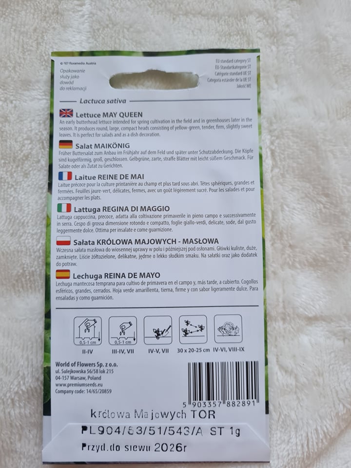 Opis rośliny: Sałatę masłową Królowa Majowych trudno znaleźć w sklepach – jest to odmiana wybitnie amatorska, która wspaniale nadaje się do przydomowych ogródków. Chociaż jej nazwa sugeruje, że powinna być zbierana w maju, jest to jednak sałata, która nadaje się do uprawy przez cały okres wegetacyjny. Odmiana charakteryzuje się bardzo smacznymi główkami i wczesnością.